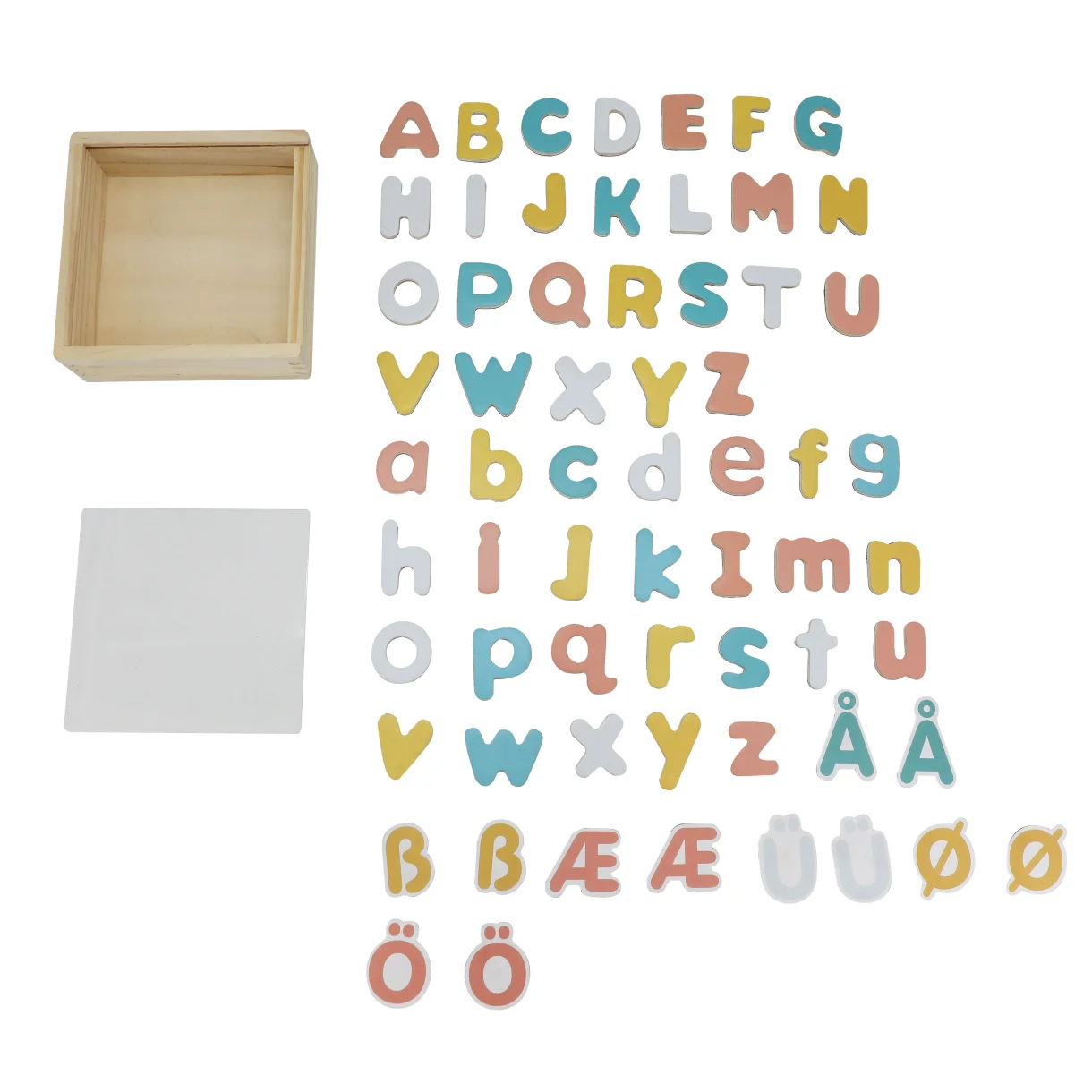 Opdag vores unikke bogstaver i smukke, afdæmpede farver, ideelle til at lære alfabetet, lege med ord og skabe små beskeder.